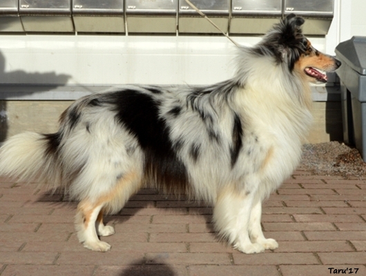 Fanny on keskikokoinen, kaunislinjainen ja vankkaluustoinen narttu, jolla on erittäin kaunis pää ja ilme, hyväasentoiset korvat, pitkä kaula ja terve rakenne, erittäin runsas runkoa myötäilevä turkki, puhtaan sininen blue merle väri ja tasaisesti jakautuneet mustat merkit. Luonteeltaan Fanny on avoin ja ystävällinen, itsevarma ja energinen narttu. |