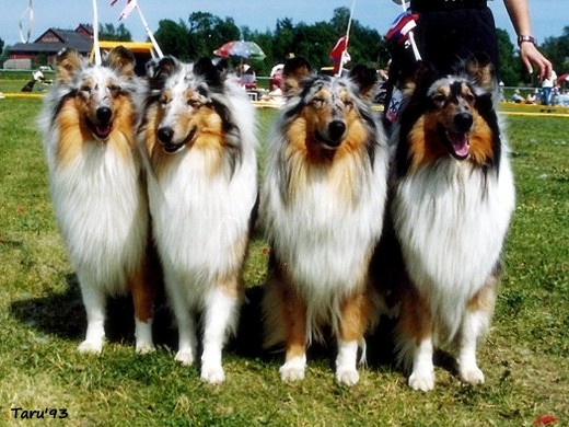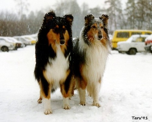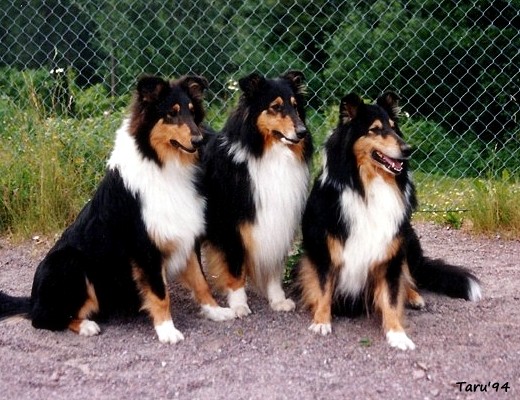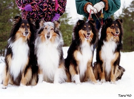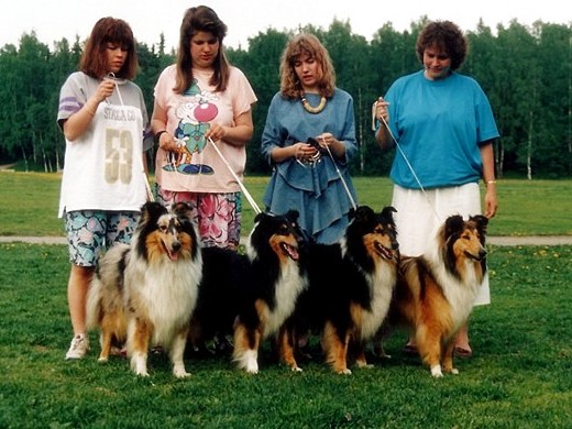 | Rovaniemellä juhannuksena 1993, colliemme FI MVA Siniketun SiniTimantti, Siniketun Timantti-Nukke ja FI MVA Miss My sekä Mirja Parkkosen sheltit Barbaros Jytte ja Siniketun Ihmemies. |