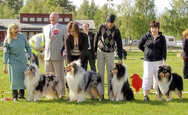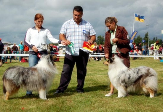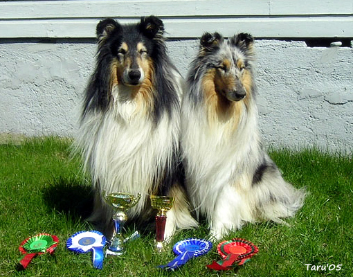 | Uudet Suomen muotovaliot Ch Siniketun Motörhead ja Ch Esmari Tähtitaivas toukokuussa 2005. |