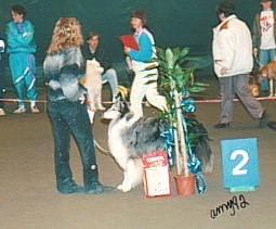 Minni Mikkelin KV-näyttelyssä 1991 (PN2, V-CACIB & BIS1-veteraani).