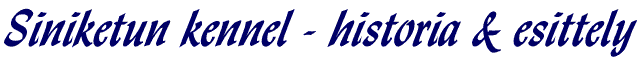 Sivuiltani löytyvät esittelyt omista koiristani, melkein kaikista kasvateistani ja monista niitten sukulaisista. Valitettavasti muutama kasvattini on 'kadonnut' vuosien varrella, joten ihan kaikista ei löydy kuvia, mutta kuulisin todella mielelläni näistäkin - kuten myös muista Siniketun-sukuisista koirista! Jos omistat tai olet omistanut kasvattini tai urosteni jälkeläisen niin olisin iloinen kuvista ja kuulumisista !!