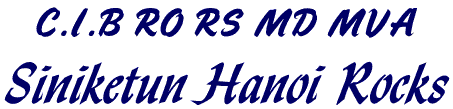| C.I.B FI EE LV LT BALT RU BY SI MVA EE LV LT BALT JMVA PLJV-04 PZJV-04 BALTV-04 LVV-05-06-07 LTV-06 AAW-08 Starsong Polar Moon | C.I.B FI SE NO POHJ EE LT GB IE MVA Lundecock's Xit from Hell | C.I.B SE NO FI POHJ EE MVA Yosemite's Following Star |