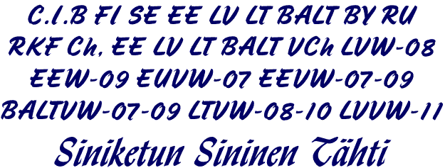 | Estonia: 2xCAC, RCACIB, 2xBOB, 2xBOS, 5xBOB-veteran, BOS-veteran, BIS4-veteran, Estonian Veteran Winner 2007 & 2009, Estonian Winner 2009, Baltic Veteran Winner 2009 |