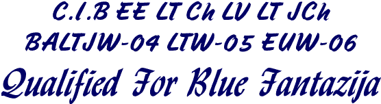 | LT Ch Emerald Empress Fantazija | PL Ch PL JCh Black Label by Ileyda | GB Ch Brilyn Rum 'N' Black |
